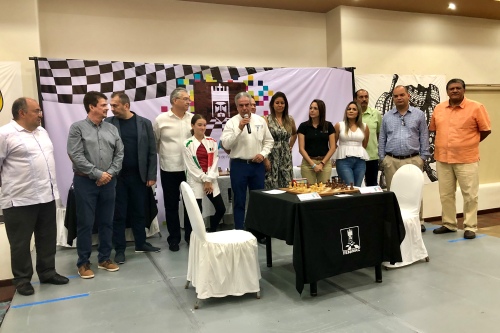Manzanillo, Col. El secretario de Educación, Jaime Flores Merlo, dio el movimiento de apertura en la cuarta ronda del Campeonato Mundial de Ajedrez Amateur 2019, con el cual, oficialmente se inauguró el evento de carácter internacional, que tiene como sede el Hotel Tesoro de Manzanillo.