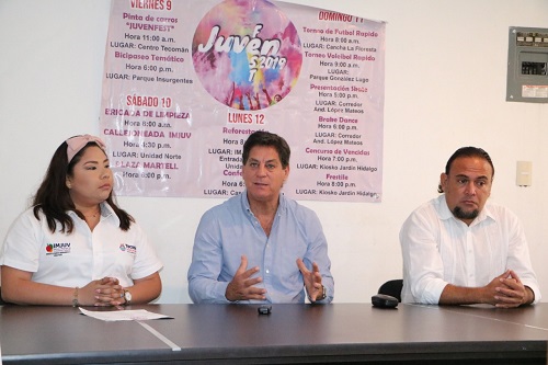 Tecomán, Col. En el marco del Día Internacional de la Juventud, que se celebra el 12 de agosto, el Instituto Municipal de la Juventud llevará a cabo el Juven Fest 2019, que contempla diversas actividades del 09 al 12 de agosto, según lo anunciado esta mañana en rueda de prensa por el alcalde de Tecomán Elías Antonio Lozano Ochoa; quien estuvo acompañado por la Directora del IMJUV Brenda Elizabeth Hernández Córdova y por el Director de Educación y Prevención del Delito Braulio Benjamín Valle Palomino quien también participará en estos eventos.