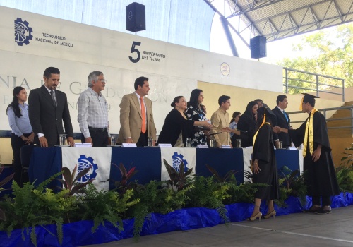 Posteriormente se hizo entrega de certificados y diplomas a los egresados de Arquitectura, Licenciatura en Administración, Contador Público, y de las Ingenierías: Industrial, Sistemas Computacionales, Bioquímica, Mecatrónica, Ambiental, Informática y Gestión Empresarial, así como de la Maestría en Arquitectura Sostenible y Gestión Urbana; y Sistemas Computacionales