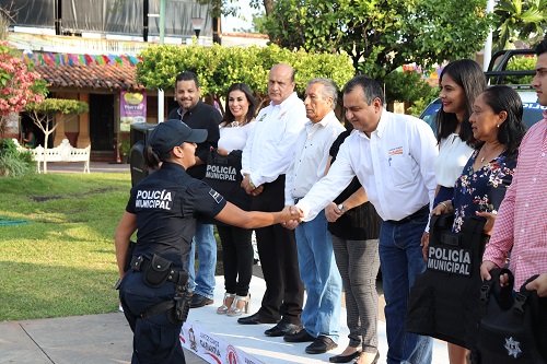 El Presidente Municipal de Villa de Álvarez, Felipe Cruz Calvario, entregó 3 patrullas y 105 chalecos antibalas, a policías y directivos de la Dirección General de Seguridad Pública, en el jardín Independencia, con una inversión total de 3 millones 923 mil 598 pesos, del programa de Fortalecimiento para la Seguridad (FORTASEG); además, hizo entrega de 8 bicicletas que el Ayuntamiento rescató en condición de chatarra.