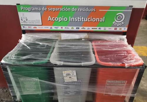El Congreso del Estado inició este miércoles el Programa de Separación de Residuos Sólidos con la instalación de contenedores al interior del edificio del Poder Legislativo, derivado del convenio firmado con la asociación ambiental “Ecología y Compromiso Empresarial” (Ecoce), una de las más grandes acopiadoras de México, que actualmente trabaja con más de 7 mil aliados en diversos estados del país.