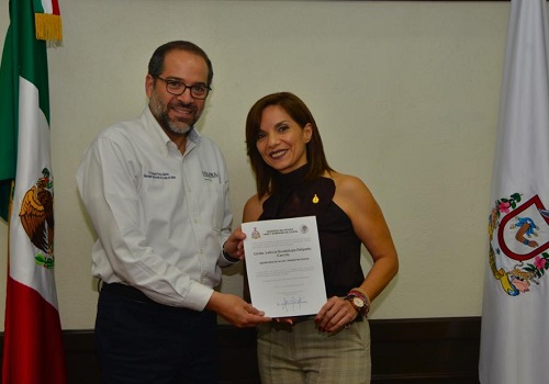 El gobernador José Ignacio Peralta Sánchez entrego el nombramiento como Secretaria de Salud a Leticia Guadalupe Delgado Carrillo, quien desde el 1º de julio se venía desempeñando como encargada del despacho de la Secretaría de Salud y Bienestar Social del Gobierno del Estado.