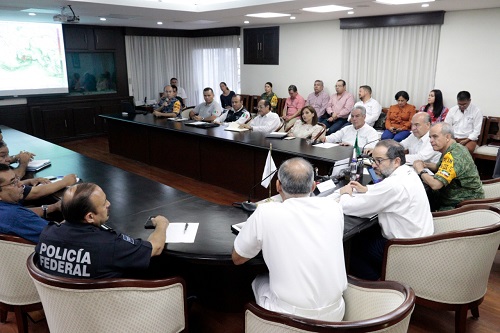 En la sala de juntas de Casa de Gobierno, en reunión del Grupo de Coordinación Operativa de Protección Civil, el mandatario exhortó a los representantes de los tres órdenes de gobierno a estar muy atento a que la operatividad en todo el Estado esté en términos adecuados, la infraestructura de comunicaciones como carreteras, puerto, aeropuertos y telecomunicaciones.