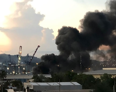 Hasta el momento se continúan con las labores para sofocar el incendio que comenzó desde el medio mediodía de ayer. El buque contenía almacenado en sus tanques 680 mil litros de Diésel, que es el que se está quemando y consumiendo hasta el momento, provocando con esto una columna de humo negro en sentido vertical, sin que esto presente un riesgo para la población ni peligro alguno para la infraestructura del puerto.