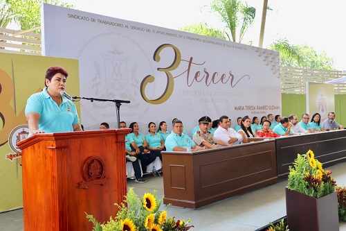 Villa de Álvarez, Col. La Secretaria General del Sindicato de Trabajadores y Organismos Descentralizados del Ayuntamiento de Villa de Álvarez, Teresa Ramírez, señaló el 4 de octubre como un día de historia para la vida sindical de su gremio con 36 años de vida, mostrando en su informe el Laudo Ejecutoriado emitido a favor de los trabajadores del Ayuntamiento de Villa de Álvarez, por el orden de los 188 millones de pesos.
