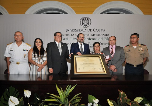 De manera póstuma, la Universidad de Colima entregó la medalla “General Lázaro Cárdenas del Río”, por sus méritos y cualidades humanísticas, al maestro universitario, distinguido jurista y servidor público, Guillermo Ruelas Ocampo, en uno de los eventos más destacados de la conmemoración por el 80 aniversario de esta Casa de Estudios, que se realizó ayer miércoles en la Pinacoteca Universitaria.