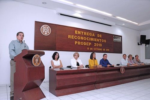 Este viernes, 140 Profesores de Tiempo Completo y siete cuerpos académicos de la Universidad de Colima recibieron reconocimientos del Programa para el Desarrollo Profesional Docente para el tipo Superior (PRODEP), de manos del rector José Eduardo Hernández Nava, en un acto realizado en el auditorio de la Facultad de Enfermería del campus central.