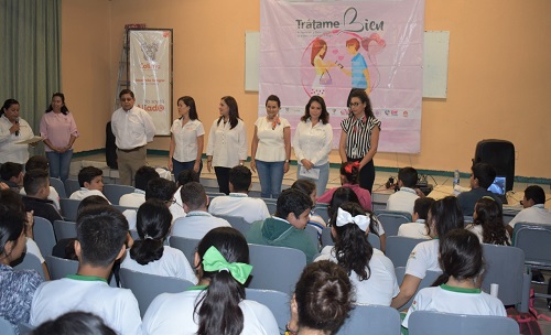 Tras resaltar que dentro de las actividades del programa de Prevención y Atención a Niñas, Niños y Adolescentes en Riesgo (PANNAR) de Municipio de Colima “promovemos el buen trato, el respeto y el amor en el noviazgo”, Azucena López Legorreta, Presidenta del Desarrollo Integral de la Familia en el Municipio de Colima, informó que se llevó a cabo la Campaña “Trátame Bien”, brindando una plática a estudiantes de Primero, Segundo y Tercero, en la Secundaria Federal Enrique Corona Morfín TM., para la Detección y Prevención de la violencia en el Noviazgo.