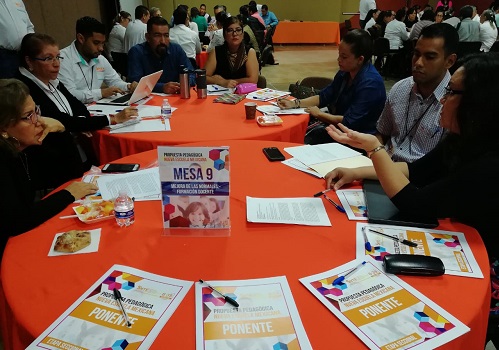 Durante las Mesas de Trabajo que se instalaron en el auditorio del Isenco se analizaron y debatieron las 200 propuestas registradas en el foro, las cuales abordaron los temas relativos a la Inclusión Educativa; Educación en la Primera Infancia y Fortalecimiento de las Normales.