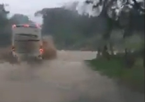 Peor esto no fue obstáculo para que el conductor del autobús intentara pasar, a pesar de ver la corriente del agua, pero fue arrastrado y flotó por varios metros hasta ser retenido por unos árboles.