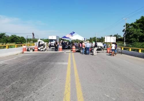 Tecomán, Col. En el municipio de Tecomán, en el bloqueo carretero instalado en el puente sobre el dren de Cofradía de Morelos, está presente en apoyo a la gente el presidente municipal Elías Lozano, quien hace unos minutos recibió una llamada telefónica del Gobierno de Colima, quien dijo que el gobernador no puede ir al lugar de la movilización, e informó que el mandatario estatal gestiona un recurso para que la semana próxima inicie un bacheo, lo que no fue aceptado por los presentes.