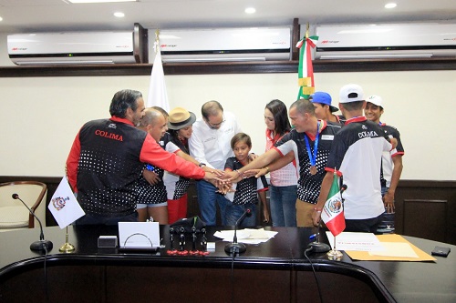 Acompañado por la directora general del Instituto Colimense del Deporte (Incode), Ciria Salazar, en la Sala de Juntas, el mandatario estatal refirió a los atletas que son modelos a seguir y un ejemplo para la sociedad por su disciplina, constancia, tenacidad y voluntad, cuyas características se traducen en resultados positivos.