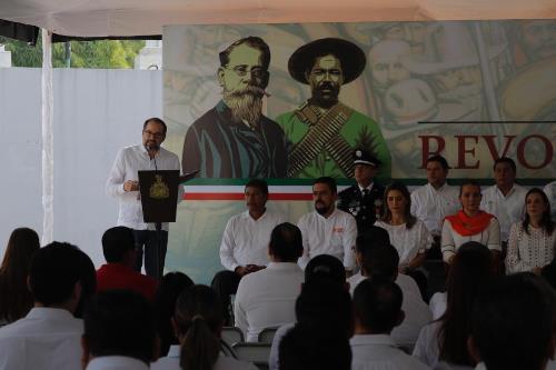 Durante su discurso oficial en el acto cívico celebrado en la Rotonda de las Mujeres y Hombres Ilustres de Colima en la Piedra Lisa, el mandatario estatal manifestó que el referente de la Revolución Mexicana brinda la posibilidad adicional de identificar una serie de ideales que son propios de la personalidad histórica.