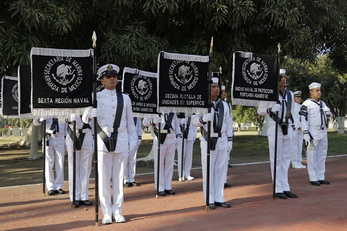 El mensaje oficial del secretario de Marina, Rafael Ojeda Durán, fue compartido por el comandante de la VI Región Naval, Salvador Gómez Meillón, quien señaló que la independencia nacional se consolidó en el mar.