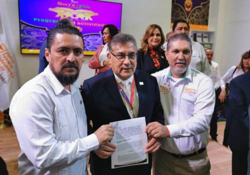 Los secretarios generales de las Secciones 6 y 39 del Sindicato Nacional de Trabajadores de la Educación (SNTE), José Jaime Núñez Murguía y Heriberto Valladares Ochoa, respectivamente, hicieron entrega al Secretario General de esa organización magisterial, Alfonso Cepeda Salas, los documentos que avalan la liberación de un predio para cada sección aprobado por el Congreso del Estado de Colima, con lo cual se da certeza a los trabajadores de la educación del patrimonio con el que cuentan.