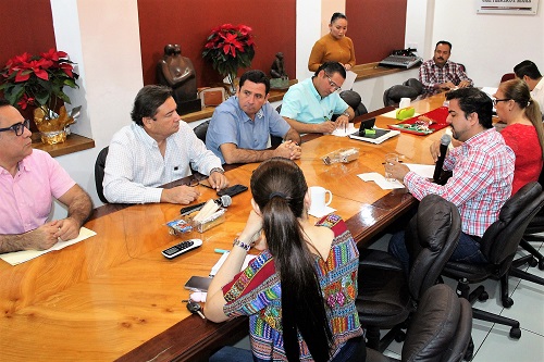 Diputadas y Diputados que integran la Comisión de Hacienda, Presupuesto y Fiscalización de los Recursos Públicos en el Congreso del Estado de Colima que preside Julio Anguiano Urbina, se reunieron en el Poder Legislativo con autoridades de ocho municipios, para analizar las Tablas de Valores Unitarios Catastrales que aplicarán el próximo ejercicio fiscal 2020.