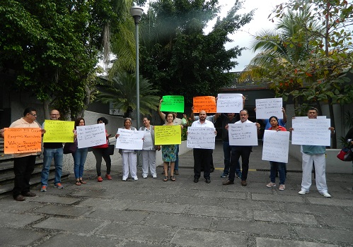 Con pancartas con las leyendas “Basta de agresiones contra la clase trabajadora del ISSSTE”; “ISSSSTE pertenece al SNTISSSTE porque siempre al último vales decembrinos”; “Eres una vergüenza Dr. Pedro Zenteno, exigimos el pago inmediato de los vales”: “funcionarios corruptos Huerta/Zenteno! Fuera del ISSSTE”, entre otros, los trabajadores manifestantes consideran que el no entregarles dicha prestación es una burla para la clase trabajadora.