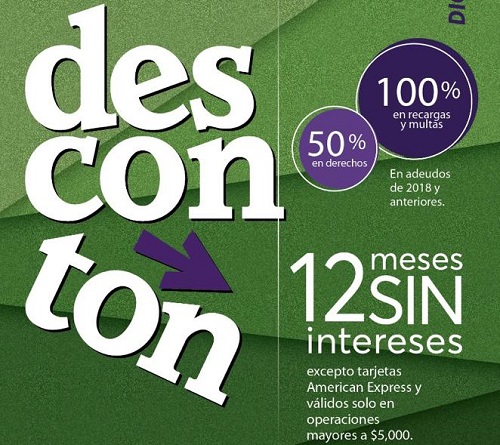 Al igual que en la primera etapa del Descontón 2019, celebrada los días viernes 13, sábado 14 y lunes 16 de septiembre, en esta segunda fase los descuentos a los usuarios son del 100 por ciento en recargos generados por falta de pago en los años 2018 y anteriores a quienes liquiden la totalidad de su adeudo.