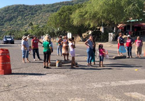 Con pancartas y colocando troncos y escombro, los manifestantes bloquearon la vialidad, reiterando la solicitud a la administración de Salvador Bueno Arceo, resolver esta problemática, pues esta situación puede convertirse en un problema de salud pública, señalan.