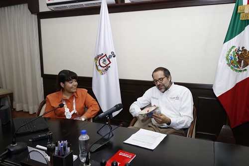 El gobernador José Ignacio Peralta Sánchez recibió a la Difusora Estatal de los Derechos de las Niñas, Niños y Adolescentes, Geraldhy Gálvez Villa, quien a finales del año pasado participó en el III Foro Panamericano de Niñas, Niños y Adolescentes en Cartagena de Indias, Colombia.