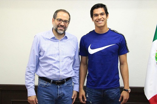 El gobernador José Ignacio Peralta Sánchez recibió en su despacho oficial de Casa de Gobierno al colimense Luis Fernando Puente Prado, jugador de la categoría sub 20 de las Chivas Rayadas del Guadalajara. Luis Fernando ha sido campeón con el rebaño sagrado en las categorías Sub 13, Sub 15 y Sub 17; además fue subcampeón del mundo en el año 2019 en el Mundial de Brasil con la selección mexicana de fútbol.