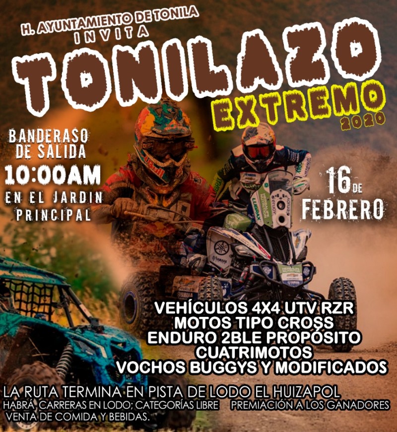 Con el objetivo de fomentar el turismo en Tonila, Jalisco, este domingo 16 de febrero se realizará la primera edición del Tonilazo Extremo, el cual consta en realizar una ruta extrema en vehículos 4x4 por lugares asombrosos llenos de tradición e historia.