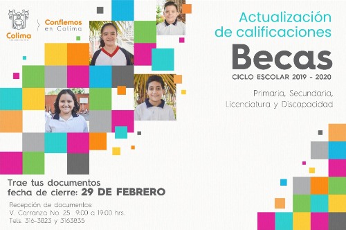 Dijo que la fecha límite es el próximo 29 de febrero; Para primaria y secundaria deben presentar el formato de calificaciones impreso con fecha de febrero de 2020; Los estudiantes de licenciatura deberán presentar el formato de inscripción, recibo de pago y calificaciones del semestre anterior terminado.