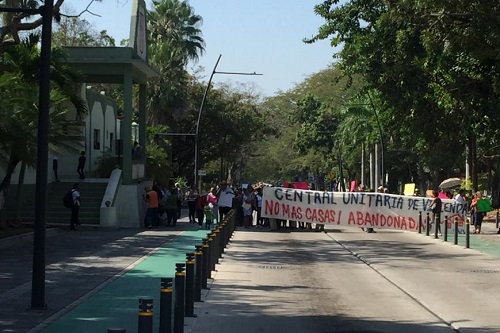 Al considerar que el Instituto de Suelo, Urbanización y Vivienda (INSUVI) en Colima, ofrece créditos inalcanzables para personas de escasos recursos, un grupo de personas integrantes de la Central Unitaria de Vivienda Colima, se manifestaron este día para exigir se entreguen los recursos de apoyo directo a los beneficiarios y no a través de este organismo gubernamental.