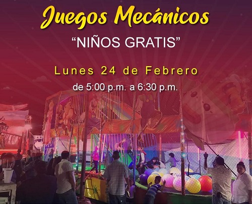 *Niños Gratis en los juegos mecánicos de 5 a 6:30 de la tarde