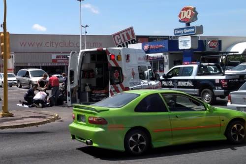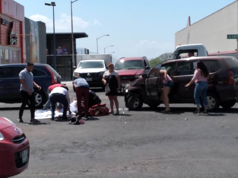Villa de Álvarez, Col. Un motociclista resultó lesionado luego de chocar contra una camioneta en el cruce de la avenida María Ahumada de Gómez y la calle Federico Cárdenas Barajas en la Ciudad de Villa de Álvarez.