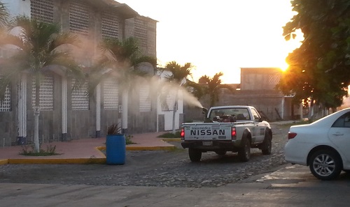 En Manzanillo se nebulizará del 2 al 27 de marzo en las colonias de las delegaciones de Santiago, Salagua y Las Brisas, así como en los fraccionamientos, sectores y barrios de Manzanillo, las zonas industrial y turística y las comunidades de Campos y El Colomo.
