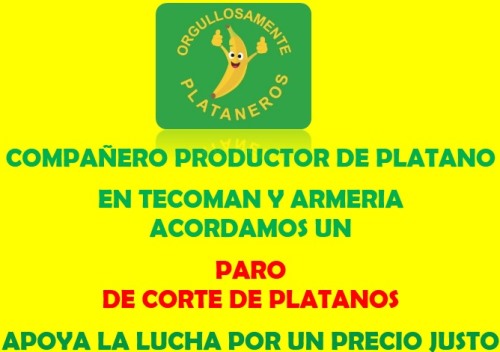 Además, se dijo que con esta medida se apoya a los productores que resultaron afectados en 2019 por fenómenos naturales que los devastaron, algunos de los cuales ya empiezan a cosechar en Cihuatlán, Marabasco y El Colomo, los que podrán vender a buen precio el poco plátano que están cosechando, considerando que con estos 3 días de paro se vacían de fruta las huertas de estas 3 regiones plataneras.