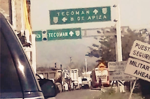 La alerta es también para quienes tengan que ir a Tecomán o al estado de Colima, para que tomen sus precauciones por la pérdida de tiempo que se está teniendo al pasar por el retén militar.
