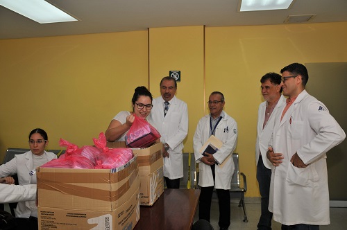 En la entrega de insumos a los jóvenes pasantes de medicina estuvieron presentes, además, el subdirector de la Facultad de Medicina, Emilio Prieto Díaz Chávez y el coordinador de Servicio Social de la Facultad de Medicina en la Clínica No. 19 del IMSS, Fabián Rojas.