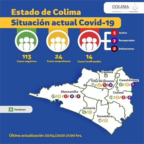 Por parte de la persona de Villa de Álvarez se detectaron dos contactos directos, 7 por parte del varón de 49 años y 5 por el joven de 23 años de edad; todos al momento sin presentar síntomas y en aislamiento preventivo.