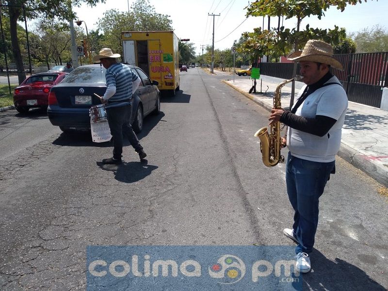 Cabe señalar que debido a la contingencia ambiental por el Coronavirus y al no tener dinero para alimentarse ellos y sus familias, varios músicos se han visto en la necesidad salir a los cruceros de la zona conurbada Colima-Villa de Álvarez, para hacer lo que saben, que es tocar canciones para, de esta manera, solicitar la cooperación de los automovilistas.