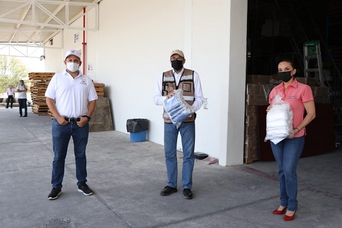 Posteriormente, Peralta Sánchez se trasladó al almacén de la Secretaría de Salud, ubicado en la colonia Burócratas Municipales en Colima, en donde el representante de la Fundación Adriana Castañeda de Rivera A.C., Luis Alberto Mercado Díaz, otorgó mil cubrebocas doble capa para personal médico.