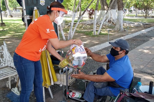 Asimismo, gracias a la aportación de la Cámara Nacional de la Industria de Desarrollo y Promoción de Vivienda (CANADEVI), se logró entregar por segunda ocasión, despensas a vendedores de la vía pública, fijos y ambulantes, quienes se han visto afectados en la disminución de sus ventas, y en algunos casos, el nulo ingreso ante los efectos económicos de la contingencia de salud.