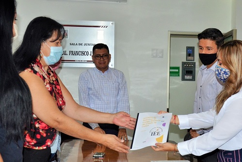 Reunidos en la sala de juntas “Gral. Francisco J. Múgica” del Palacio Legislativo, en donde también estuvieron la Diputada Claudia Gabriela Aguirre Luna y el Diputado Miguel Ángel Sánchez Verduzco, así como el Director Jurídico del Congreso, Alberto Vázquez Martínez; la Consejera Presidenta, Nirvana Rosales Ochoa señaló que acudían a entregar el documento en representación de la totalidad de integrantes del Consejo General, y cuyo contenido busca mejorar las reglas locales para generar mayor certeza al próximo Proceso Electoral Local 2020-2021.