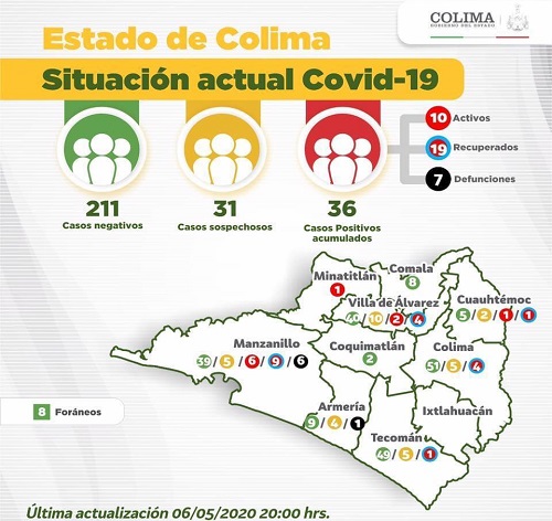 Hoy miércoles 6 de mayo fue un día negativo para el Estado de Colima en el recuento de la Pandemia del Coronavirus, pues en las últimas 24 horas se sumaron tres casos positivos más y lo peor, dos personas fallecidas más.