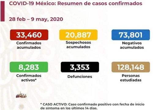*Suman 3 mil 353 fallecimientos y 33 mil 460 casos positivos en todo el país