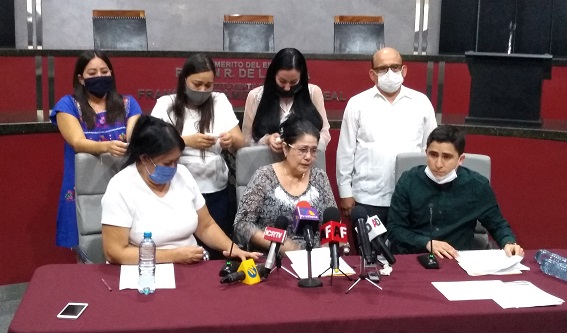 La Madre de la diputada Francis Anel Bueno Sánchez, Emma Sánchez, flanqueada por las diputada y diputados, recordó que “mi hija está desaparecida desde el 29 de abril se la llevaron contra su voluntad”.