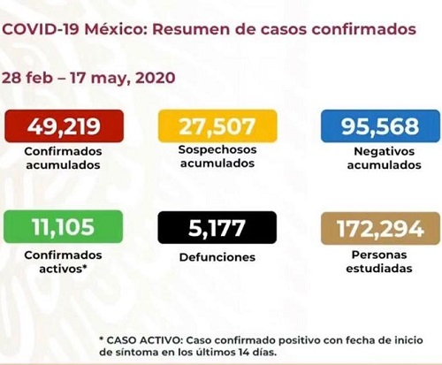 En la conferencia de prensa de hoy domingo desde Palacio Nacional, López-Gatell expuso las cifras actuales al corte de este 17 de mayo: