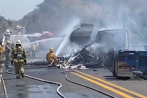 Según reportes de autoridades de Protección Civil de Ciudad Guzmán, además del tráiler incendiado en este percance participó otro tractocamión que transportaba un contenedor el cual cayó del puente, se menciona la participación de otro tráiler con dos autotanques, el cual no fue alcanzado por las llamas.