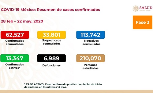 *Ya van 6 mil 989 decesos y 62 mil 527 casos positivos en la República Mexicana