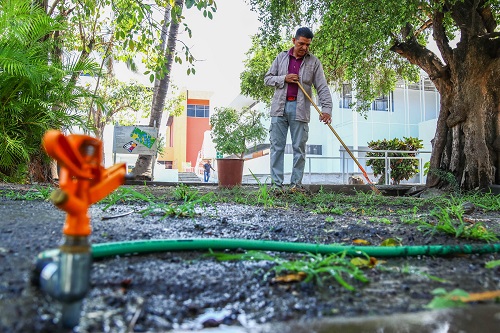 Óscar Jaime Ascencio García, responsable de servicios generales de la Delegación Colima, explicó en entrevista las estrategias que han desarrollado desde esa delegación para continuar con el mantenimiento y limpieza de áreas generales del campus central, centros investigación y campus norte.