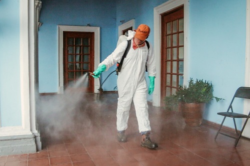 Trabajadores de la Dirección de Servicios Públicos, sanitizaron el edificio principal de la Presidencia, los interiores y exteriores, así como la Oficialía de Registro Civil, la cajas de la Tesorería, la Contraloría, entre otras; Con la intensión de que los lugares donde normalmente hay mayor concentración de personas, sean desinfectados y disminuir el riesgo de los posibles contagios.