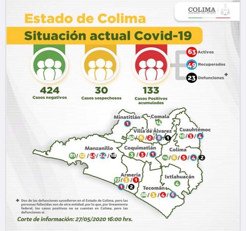 Con la confirmación de 12 casos más, en Colima registra un total de 133 casos acumulados Covid-19, informa la Secretaría de Salud y Bienestar Social del Gobierno del Estado.