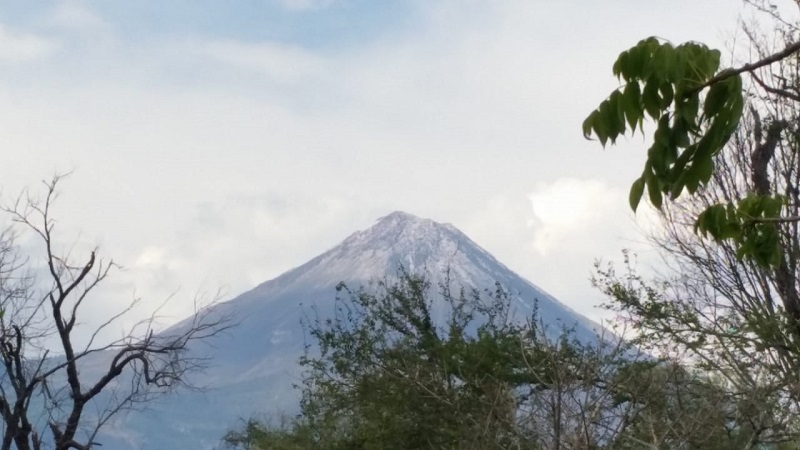 Luego que ambos volcanes permanecieron cubiertos por las nubes la mayor parte del día, por la tarde se despejaron un poco, por lo que dejaron ver como se ‘pintaron’ de blanco.