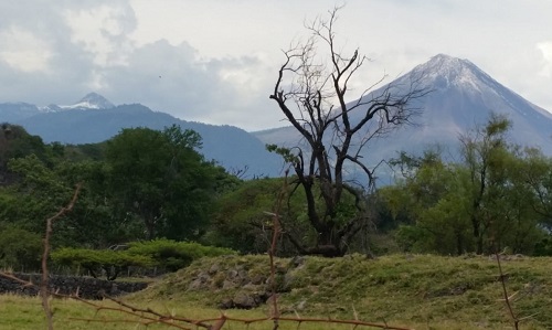 Cabe señalar que este sábado por la tarde la lluvia y el granizo llegó hasta Zapotlán el Grande, Jalisco, desde donde se pudo observar mejor la imagen de los volcanes.